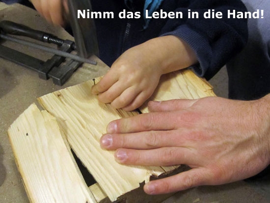 Die Werkstatt richtet sich insofern nicht nur an Kinder, sondern immer wieder auch an Eltern. Kinder erleben tatkräftige Erwachsene, die mit viel Freude an einem Werkstück arbeiten – bei den kleineren Kindern die Eltern, ansonsten natürlich auch die Kursleiter. Diesen Vorbildern können sie praktisch und in ihrem Empfinden nacheifern.